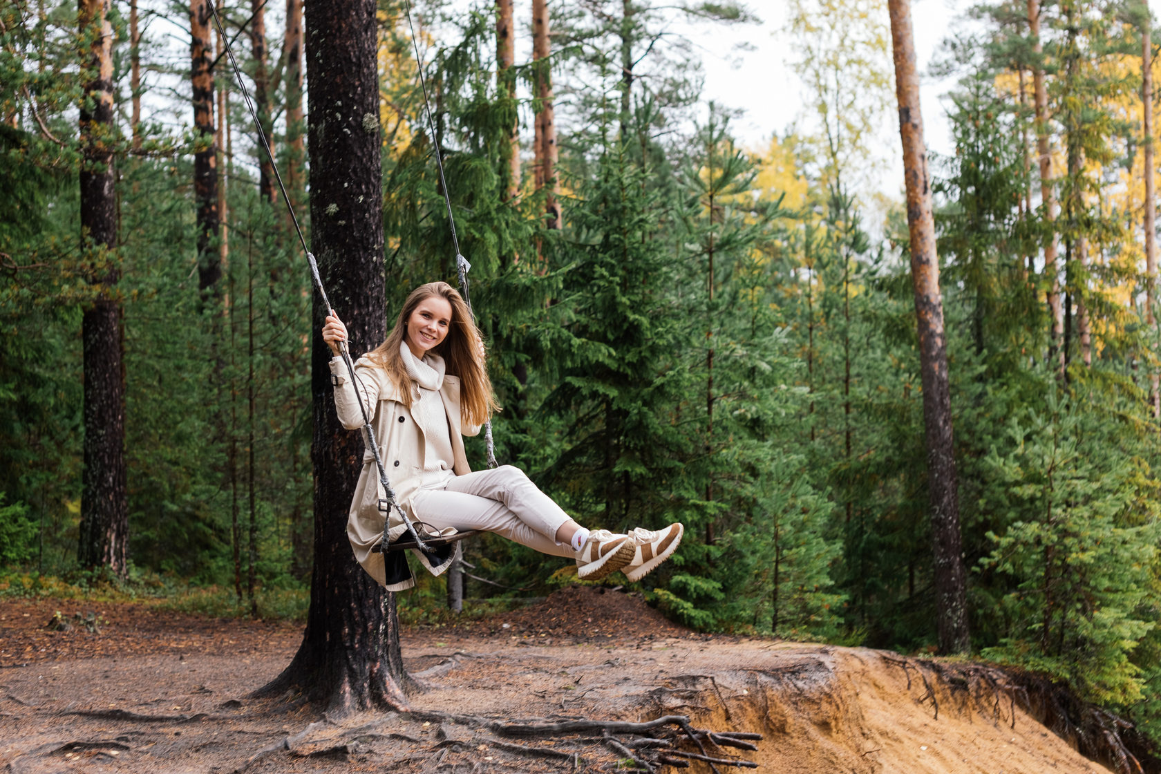 1. Качели в Зеленогорске. Это место повидало не одну фотосессию, но до сих пор вызывает неизменный интерес и удерживает симпатию каждого там побывавшего. Качели над обрывом, надежно привязанные к стволам двух деревьев. Вид (особенно разноцветный осенний) завораживает. Впечатления от катания тоже :) И кадры получаются очень эмоциональнами.