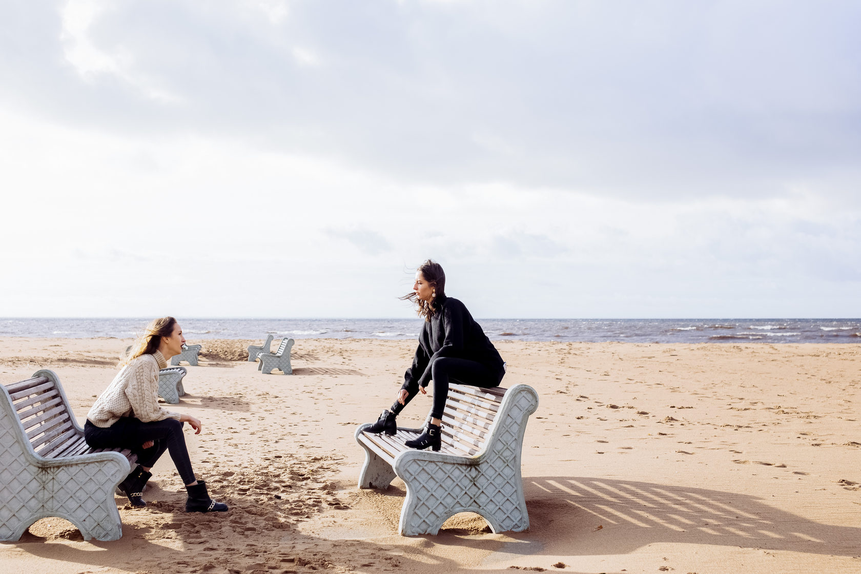 2. Залив со скамейками расставленными в шахматном порядке. Недалеко от первого места (на машине минут 15). Залив для каждого жителя Петербурга место особенное: есть ощущение, что мы живем у моря (пусть и мелкое, и холодное около 355 дней в году))). Ритм скамеек на фото выглядит идеально.
